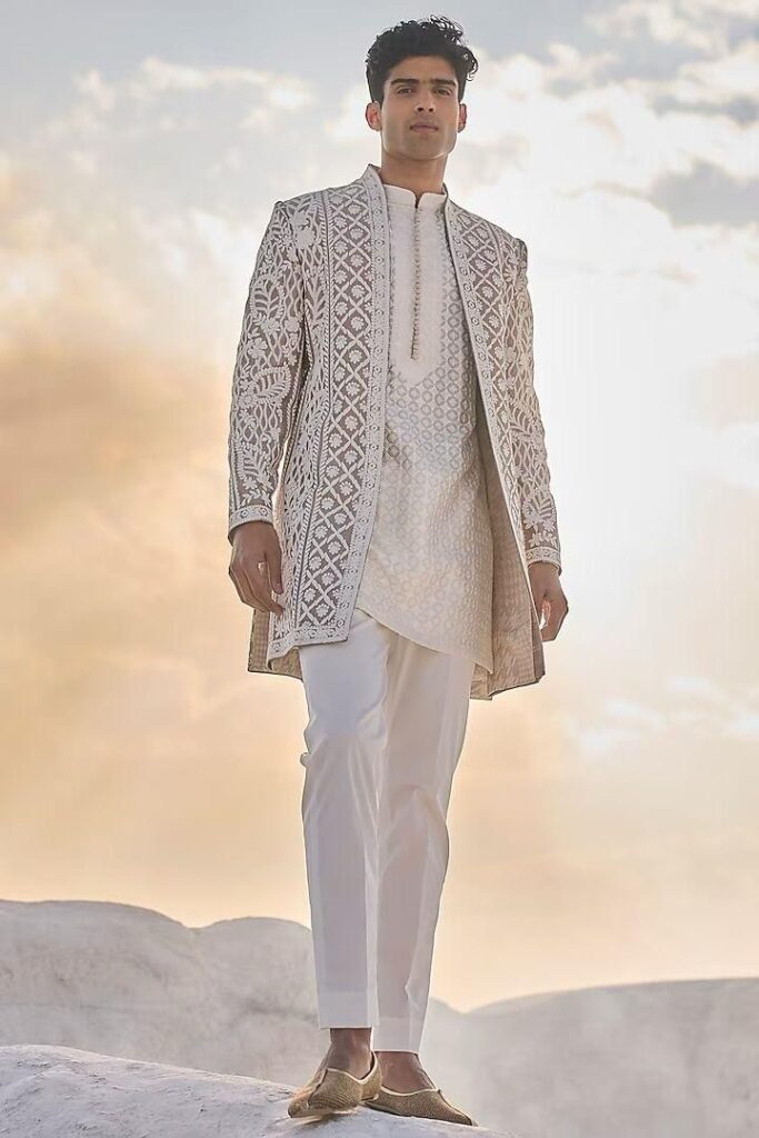 5. The Monochromatic Ivory Sherwani — Timeless Grandeur