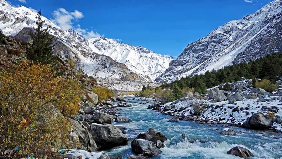 Hidden away in Kinnaur, Sangla Valley is where rugged meets inviting. The Baspa River winds through wooden villages, apple orchards and meadows that burst with color in late summer. Picture drinking chai by a rushing stream, snow-capped peaks off in the distance and nothing on your mind except the sound of water. Life slows down here and that’s exactly what makes it special.